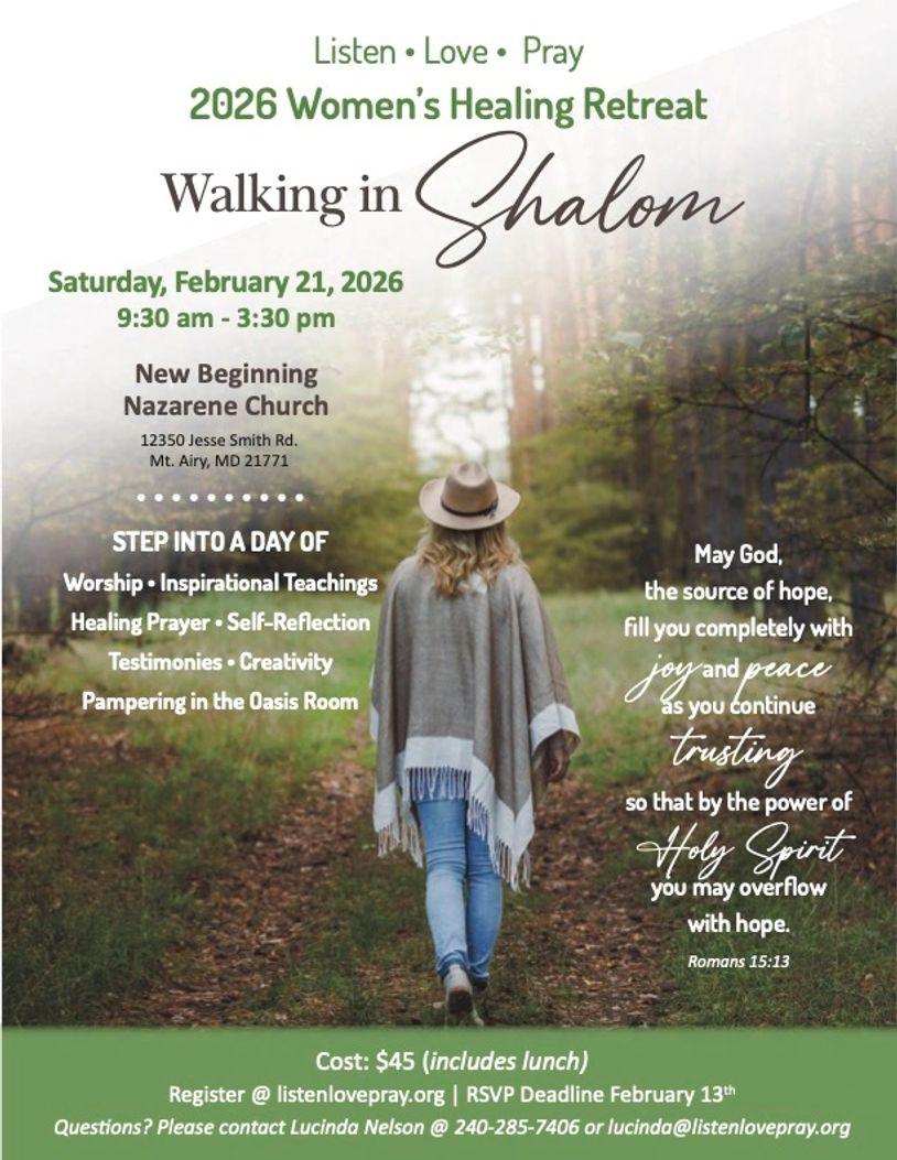 Step into a sacred space created just for you. A day to rest, restore, and reconnect with the peace God freely offers. Walking in Shalom is a heart-centered women’s healing retreat designed to nurture your spirit and renew your hope.